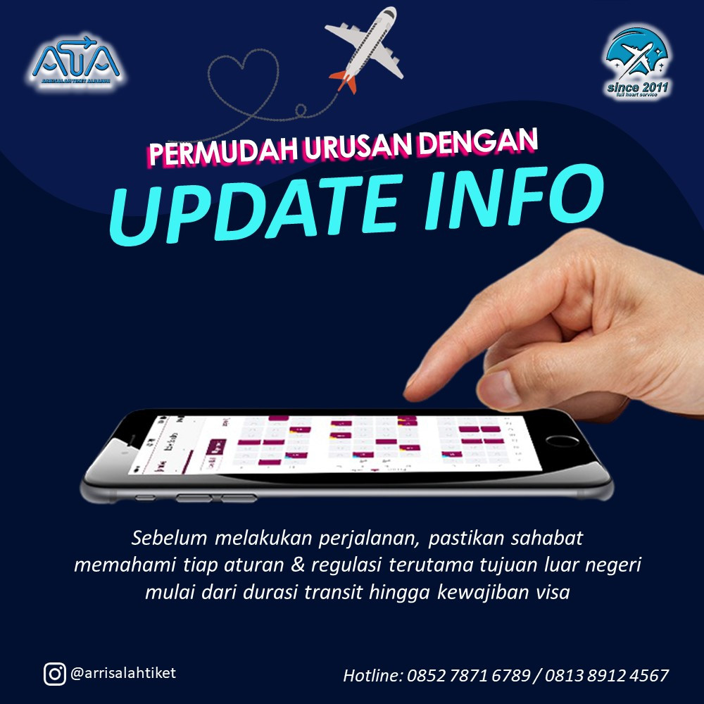 Kami akan selalu memperbaharui informasi terkini terkait hal- hal penting seperti visa, visa transit, durasi transit dan lain- lain. Silakan kunjungi official social media kami.
